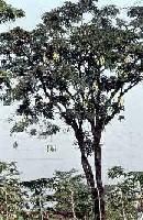 | DESCRIPTION: It is a tree up to 15-40 m in height and with a trunk diameter of 50-100 cm. Leaves bipinnate on 2-6 cm long stalks. Pinnae 10-19 pairs, 5-9 cm long, each with 31-38 pairs of opposite linear leaflets, 5-9 mm long and about 2 mm wide. Pods large, 35-55 cm long and 3-5 cm wide, straight or more commonly twisted, dangling in small bundles, green becoming black. Each pod contains 10-18 large seeds. USE: Seeds are sometimes used as a vegetable and young leaves and fresh parts of the flower stalks are also edible. Wood is used for paper pulp and as timber. The seeds are used in local medicine against hepatalgia, oedema, nephritis, colic, cholera, diabetes and as an anthelmintic, and also applied externally to wounds and ulcers. The seeds are also valued as a carminative. The tree is planted for shade and shelter. GROWING PERIOD: Perennial. COMMON NAMES: u‚pang, petai, chou dou, sataw. FURTHER INF: It is a native of the Malay Peninsula, growing wild in lowland forests, often cultivated in Malay kampongs. It has been cultivated in Java since ancient times. It occurs in scattered lowland rainforests and sometimes also in tall secondary forest, on sandy, loamy and podzolic soils, also in waterlogged locations, in freshwater swamp forest and on riverbanks. The tropical lowland tree requires some shade when young. |
